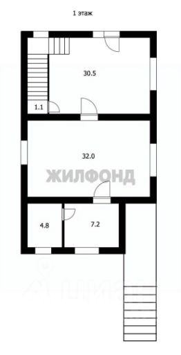 цокольный этаж: три технических помещения два больших (по 31,5 кв.м) и одно небольшое (12,5 кв.м).