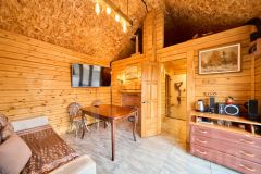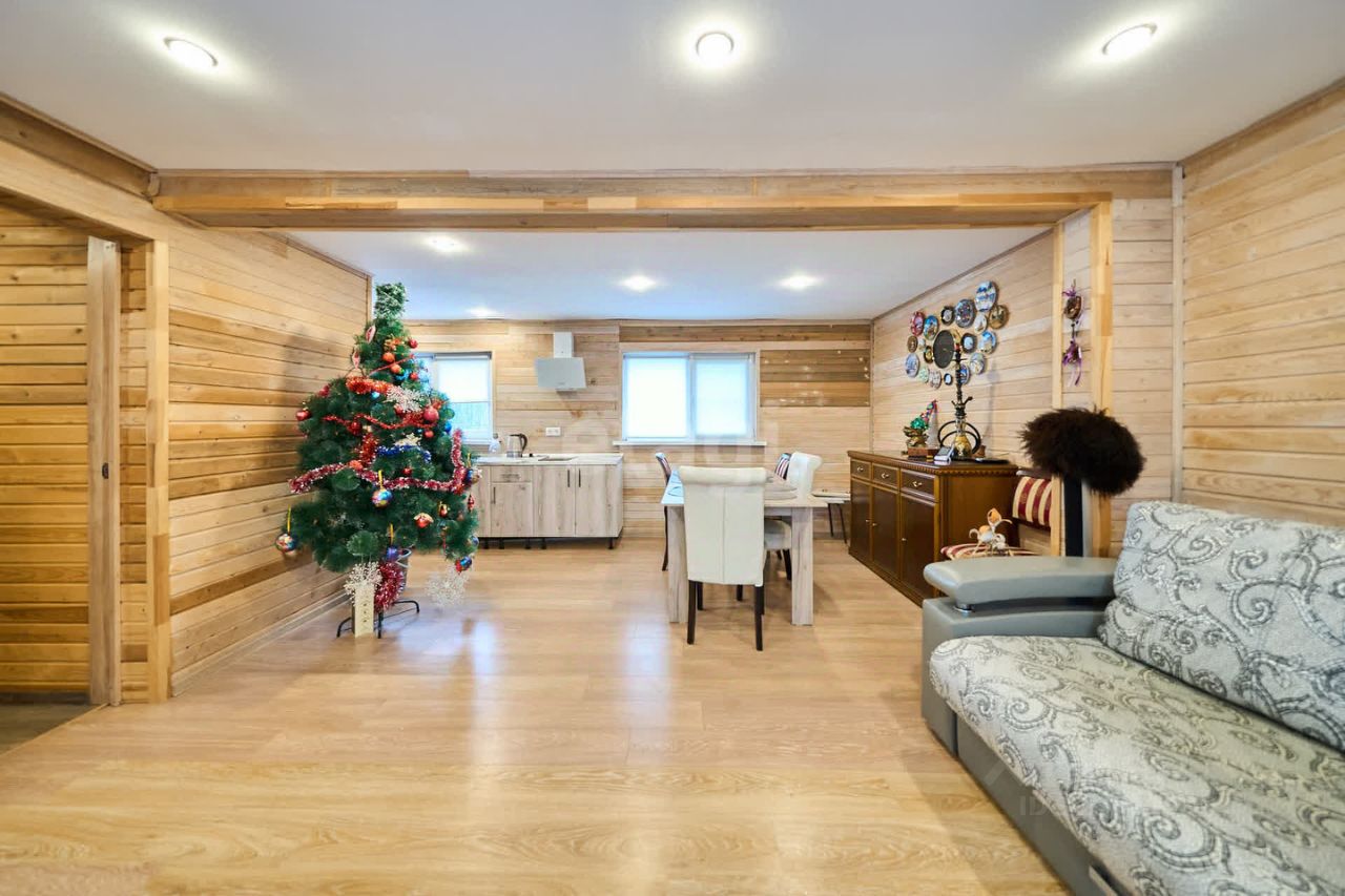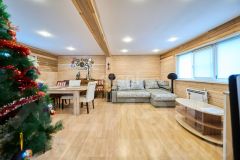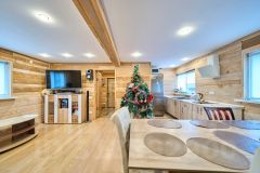 Свежий дом: новый деревянный коттедж для большой семьи. Просторная гостиная с кухней и две теплые комнаты, которые готовы принять большую компанию на выходные.