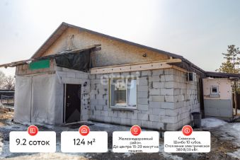 К продаже представлен просторный дом 2022 года постройки в — г. Хабаровск, ул. Трехгорная (р-н малого аэропорта). Дом зарегистрирован как жилой (не дачный), прописка, присвоен адрес. Построен с использованием современных инновационных технологий с ремонтом по дизайн проекту. Материал стен - газоблок. Перекрытия - монолитное + арм. пояса. Фундамент - усиленный УШП (Утеплённая Шведская Плита) с тёплым интегрированным полом. Площадь дома 124 кв. по 1-му ЭТАЖУ. Высота потолков 2,90 м. Три комнаты, гардеробная и просторная кухня гостиная. Скважина с чистейшей водой. Шамбо 10 кубов. Отопление электрическое 380 В/30 кВт. (4,22 руб.за 1 кВт). Площадь участка 924 м.кв. Межевание проведено. Категория земель: Земли населённых пунктов. Для ведения гражданами садоводства. Участок разработан и освоен, с плодово - ягодными насаждениями, выполнены дорожки, ограждение участка кирпичное.