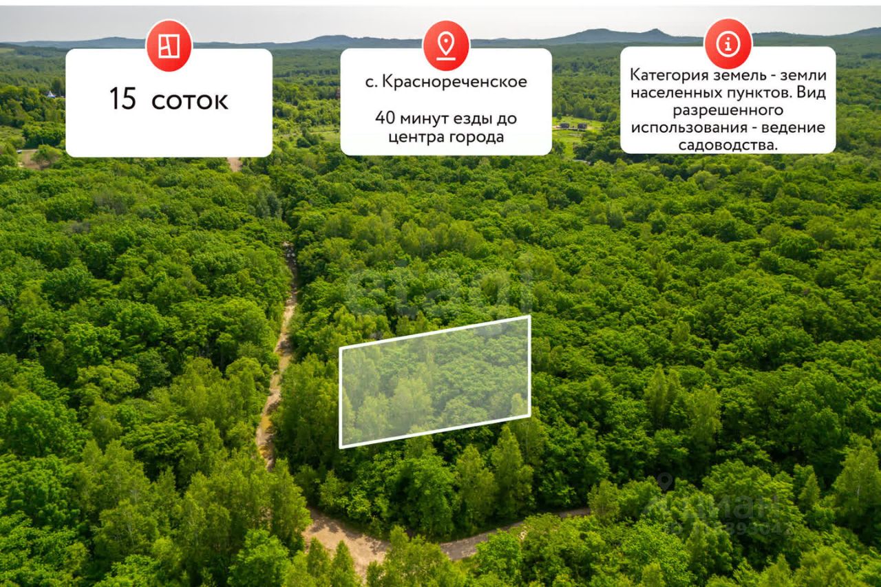 Шикарное место для базы отдыха! Продажа участка 15 соток в Хабаровском районе с. Краснореченское, в 5481 метрах на юго-запад от дома 1 по ул.Новой.