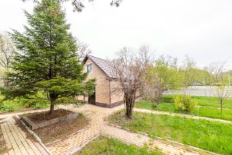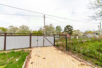 На участке расположен гараж на одну машину, стилизованный под домик.