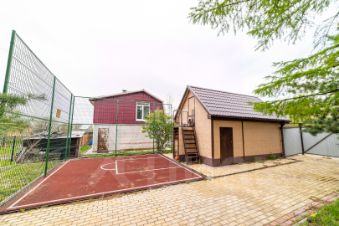 Спортивная площадка со спец. покрытием. Дорожки по всему участку с дренажной системой.