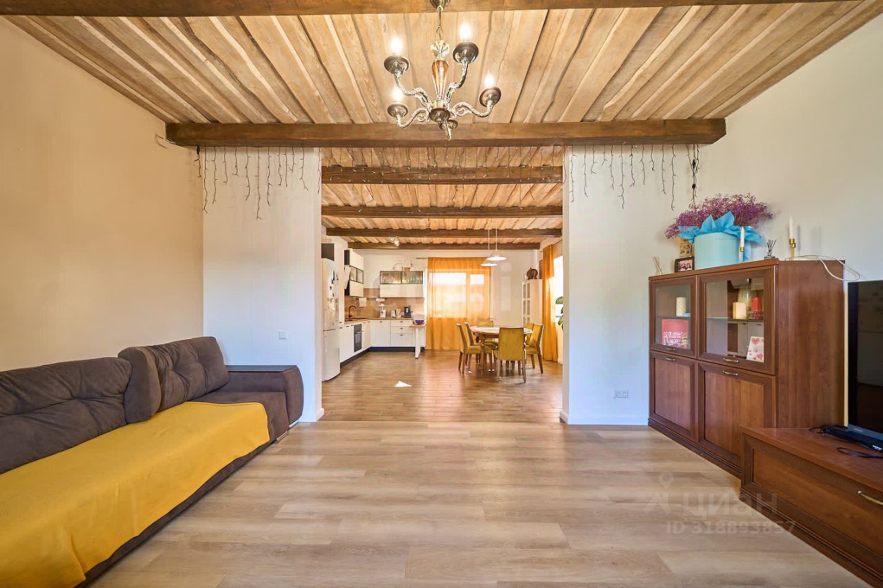 В доме установлена современная кухня с австралийскими доводчиками, мебель выполнена из массива, межкомнатные двери отличаются высоким качеством и выполнены из шпона. Сантехника также премиум-класса, с инсталляцией Grohe. Предусмотрены два санузла и отдельная ванная комната. На первом этаже расположена котельная. Стены окрашены, что позволяет при желании обновить их с помощью покраски или обоев. Полы первого этажа выполнены из керамогранита, а потолок с декоративными балками смотрится очень привлекательно; на втором этаже установлен натяжной потолок.