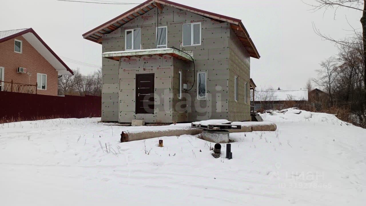 Коттедж 2023 года постройки из газобетона; Фундамент: буронабивные сваи + ростверк + плита. На полу залита бетонная стяжка и уже можно укладывать финишное покрытие (паркет, ламинат и т.д.). Стены выровнены, загрунтованы и оштукатурены, сантехника установлена. Отопления котеджа теплый пол по первому этажу, второй этаж - радиаторы отопления. Входная дверь с подогревом. Фасад дома утеплён- "пеноплэкс". Кровля- металлочерепица. Электра проводка разведена по комнатам (380 В/ 15 кВт). Подключена централизованная вода. Канализация на 8 кубов из железобетонных колец.