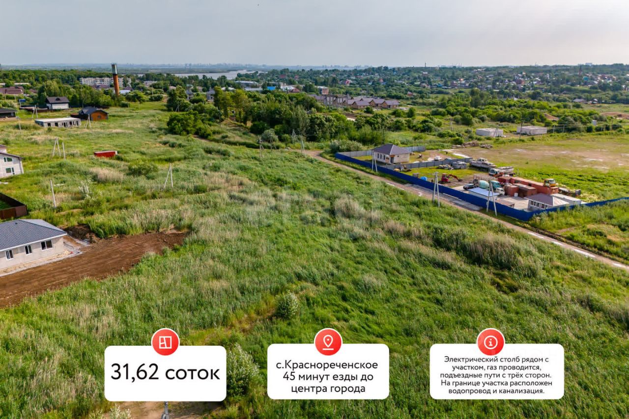 Продам земельный участок 3162 кв.м. в собственности, с. Краснореченское. Адрес: примерно в 429 м. по направлению на юго-запад от ориентира жилой дом, расположенного за пределами участка, адрес ориентира: Хабаровский край, р-н Хабаровский, с. Краснореченское, ул. Почтовая, д. 2Г. Категория земель: Земли населенных пунктов. Для малоэтажной застройки (до 3-х этажей). Электричество  столб рядом с участком, газ проводится,  подъездные пути с трёх сторон. На границе участка расположен водопровод и канализация. Межевание: Проведено. Сам участок находить в экологически-чистом районе, недалеко от протоки Амура рядом с базой отдыха "Заимка", в 10 минутах от города Хабаровска. Поможем с постройкой ДОМА можно в ипотеку. Документы готовы к  продаже.