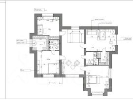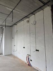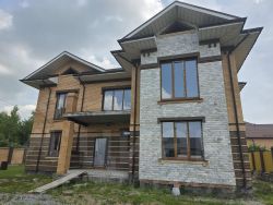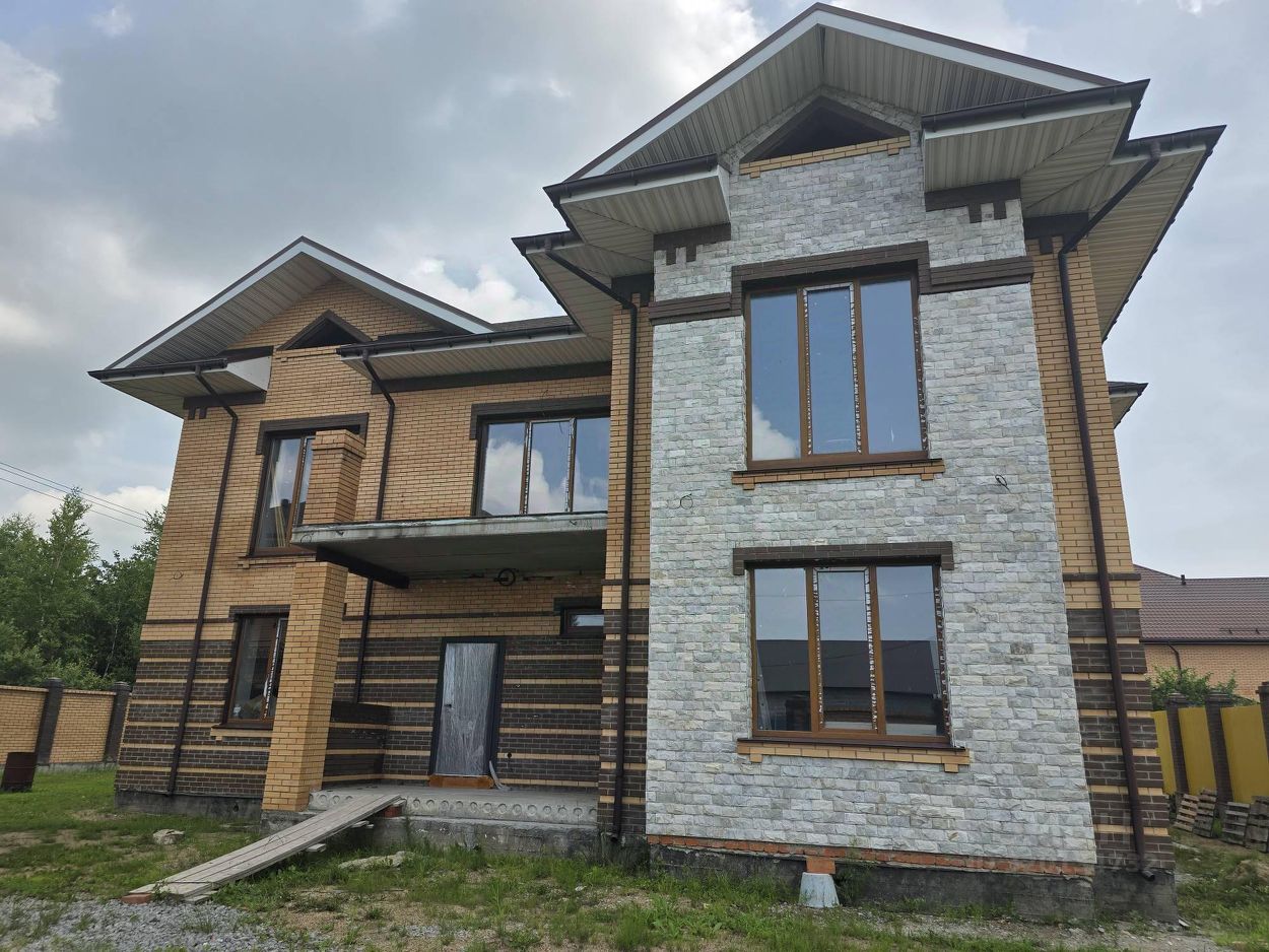 Шикарный коттедж, построен из кирпича, толщина стен 60, облицовка тоже кирпич, крыша гибкая черепица. Великолепная планировка: на первом этаже тренажерный зал, зал с кухней совмещены, кабинет, бойлерная, большая ванная, туалет и просторный холл + 2 входа; на втором этаже мастер-спальня с гардеробной и ванной комнатой, три комнаты и просторный холл с выходом на балкон. Отделка не завершена: стены проштукатурены, сделана полностью вся электрика, теплые водные полы на обоих этажах, полностью закончена работа по воде, отоплению, канализации. Канализация шамбо, но в ближайшие 2 мес будет центральная врезка. Стоит 2 котла и 2 больших бойлера, фильтры. Газ будет точно в 2026 году, он уже подведен к Солнечной поляне. Куплены унитазы, полотенцесушители и ванна.