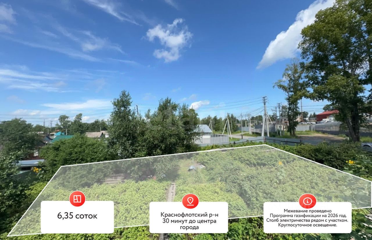 Земельный участок 6,35 соток в Краснофлотском районе по ул. Полины Осипенко. Межевание проведено, назначение земли — под индивидуальный жилой дом. Участок имеет прямоугольную форму и примыкает к асфальтированной дороге (ремонт был в 2021 г.), что обеспечивает удобный подъезд и упрощает процесс строительства. Также можно организовать заезд и ворота с двух сторон. Программа газификации на 2026 год. Столб электричества рядом с участком. Круглосуточное освещение.