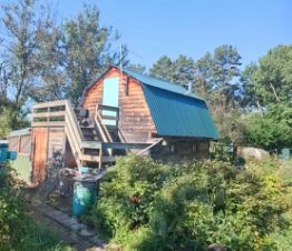Продается прекрасная и дорогая сердцу дача в СНТ Связист, участок 11,43 соток. Идеальное место для отдыха и ведения дачного хозяйства. Расположение: - район большого аэропорта. - от остановки до дачи 20 минут пешком - 80% дороги асфальтобетон. Дорога находится в круглогодичном содержании. Территория вокруг дачи: - в 20 метрах от дачи находится большое красивое озеро, на котором можно прогуливаться на лодке или SUP-доске, в теплый период купаться. Нахождение на озере посторонних лиц запрещено. - через участок красивейшая лесополоса с многолетними соснами и милыми обитателями (белки и птицы разных видов). Территория участка: - участок огорожен со всех сторон забором. С лицевой стороны (дорога) участок защищен от посторонних взглядов сплошным забором из профлиста высотой 1,5 м. - парковка на 2 автомобиля вымощена бетонной плиткой. Въезд на парковку через распашные ворота (очень удобно для доставки пиломатериалов, грунта и т.д.). - основные дорожки вымощены тротуарной плиткой - две площадки для отдыха (одна между домами и в зоне барбекю) также устроены из бетонной плитки Строения: - ПЕРВЫЙ ДОМ из дерева состоит из прихожей и комнаты. Требуется ремонт фундамента; - ВТОРОЙ ДОМ 2015 года построенный по каркасной технологии с отделкой сайдингом состоит из кухни, спальной комнаты и пристроенной беседки. В доме оборудована чугунная печь. Окна в доме пластиковые. Одно окно устроено с дополнительной форточкой для установки кондиционера (кондиционер прилагается). Пристроенная беседка с москитной сеткой и опускающимися шторами из долговечной морозостойкой пленки защищает от гнуса, ветра и косого дождя. - БАНЯ из качественного бруса (15х15 см) размером 4 х 4 м с пристройкой веранды 2,3 х 6 м. В бане комната для отдыха, моечная с четырехскатным бетонным полом покрытым жидкой резиной, парная с теплоизоляцией, специальными отверстиями для вентиляции воздуха (проект выполнен опытным инженером), отделка в парной и полок из липы. ВЕРАНДА ОГРОМНАЯ для отдыха большой компанией, закрытая с москитной сеткой и опускающимися шторами из долговечной морозостойкой пленки защищает от гнуса, солнца, ветра и косого дождя. С веранды выход на лестницу, ведущую на балкон и мансарду. В мансарде комната для отдыха и проживания. - ТЕПЛИЦА из поликарбоната очень удобная, можно ходить в полный рост. - Также построены: детская игровая площадка с горкой и капитанским мостиком, большой сарай для хранения инвентаря, пергола с летним душем, небольшой сарай для хранения укрывных материалов с емкостью (еврокуб) на крыше для устройства капельного полива в теплице и резервного полива, туалет. - Есть удобная мангальная зона прикрытая постройками от глаз соседей. Плодовые деревья (груши, яблони) и кустарники (малина, ежевика, вишня, ирга, облепиха, виноград, крыжовник, жимолость, чёрная, красная и белая смородина), цветы (розы, георгины, жасмин и др.). Несколько грядок с клубникой. По территории проходит летний водопровод. Электричество КРУГЛОГОДИЧНОЕ! Бдительная охрана.