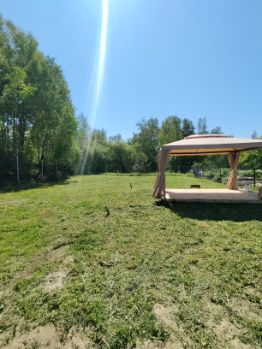 Очень красивый участок. По документам 4 сотки, по факту 8. Электричество, забор, ворота, шатер, каркас туалета. С одной стороны соседи, остальное лес и озеро. Один из лучших СНТ Изыскатель. Охрана круглый год. Въезд в СНТ через автоматические ворота.
