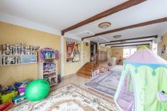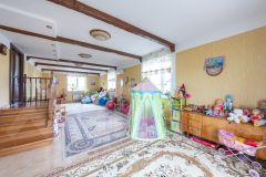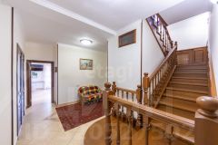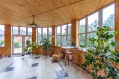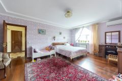 На второй этаж ведет массивная, крепкая, красивая лестница из цельного дуба. На втором этаже большая детская комната с игровой зоной 52,1 кв.м., 5 спален разной площади, 2 сан узла, веранда с витражным остеклением, оборудованная под спортзал.
