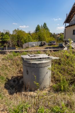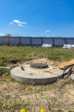 По периметру участка уложены дренажные трубы и обустроен колодец из ж/б колец(4м). Также по периметру участка сделан ж/б ростверк на буронабивных сваях под забор. Часть участка огорожена забором (профнастил).
