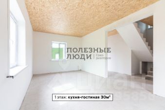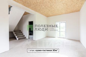 1 этаж: кухня-гостиная площадью 30м с выходом на участок, большой санузел 9м и техническое помещение с коммуникациями отопления и водоснабжения