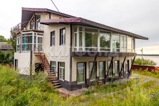 Коттедж расположен на первой береговой линии. Прекрасный вид на реку и город, свой выход к реке с участка.