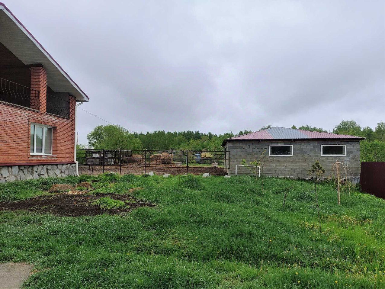 На участке в 1000 кв. м есть летняя беседка, и сарай из отсевоблока. Есть масса места для бани, грядки под зелень, лужайки или сада.