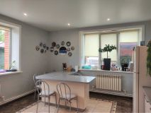 Просторный дом из традиционных материалов - отсевоблок, кирпич, бетон. Большие комнаты, высокие потолки - в доме очень свободно дышится и при этом достаточно уютно.