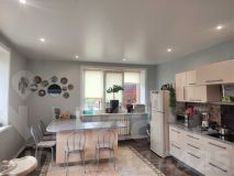 Кухня-гостиная светлая (в ней два окна) и также очень вместительная - в ней будет чувствовать себя комфортно даже очень большая семья.