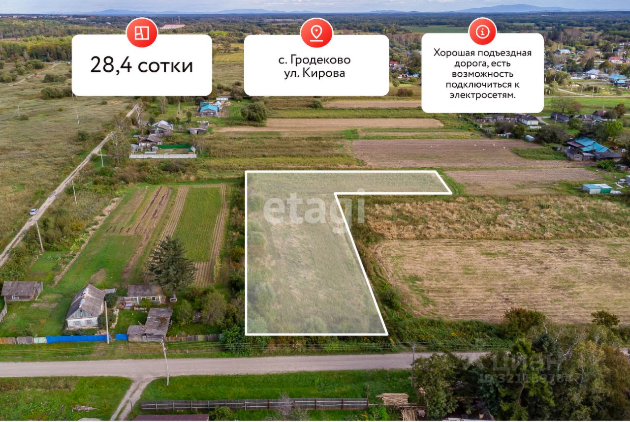 Предлагается к продаже замечательный ровный участок в с. Гродеково на улице Кирова, площадью 28,4 соток. Есть межевание. Земля хорошо освещена со всех сторон солнцем, вода не застаивается, участок не топит. Есть хорошие подъездные пути. Участок находится в собственности.