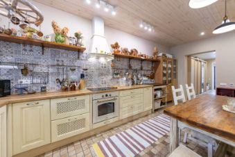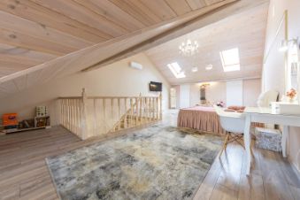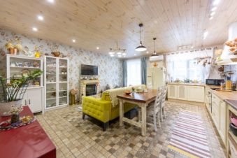 В Доме все сделано с душой и любовью, для уютного и комфортного проживания. Дизайн и наполнение каждого этажа эксклюзивно, с использованием современных высокотехнологичных, качественных материалов и звукоизоляции . Толщина стен 60см. На первом этаже размещена очень просторная уютная гостиная с камином, позволяющая в любое время года создать настроение и теплоту, а также открывается прекрасный вид и выход на свой участок, где есть место для семьи и для большой компании в уютной беседке рядом с настоящей русской печью, которая в любое время года позволяет готовить вкусную еду в настоящей печи. Второй и третий этажи, продолжают радовать своей просторностью, высокими 3,5м потолками, большой площадью и балконом, третий этаж имеет высоту потолка 5м, все выдержано в приятных спокойных тонах, материалы позволяют изменить цвет стен и без проблем при желании наклеить обои, а также добавить дополнительное зонирование пространства, еще для одной комнаты.(общая площадь для проживания 200м2).