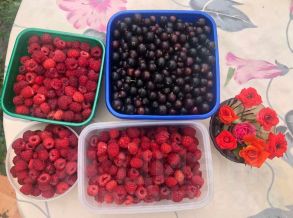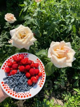 Так же на участке множество насаждений: жимолость , смородина красная ( много) и чёрная 3 х видов ( много вдоль всего участка ) слива, яблоня, облепиха, ирга, малина дальневосточная, малина лемонтантная, малина кавказская, абрикос , вишня, клубника 4 видов.