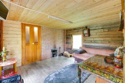 На участке дома (вид разрешенного использования: для ведения личного подсобного хозяйства), имеются постройки: новая баня ( 2022 г ) из кедровой доски , с камином, прачечной и выходом на собственное озеро, гараж (блок комната ), сарай из бруса для ведения хозяйства (козы, куры ), детская площадка,