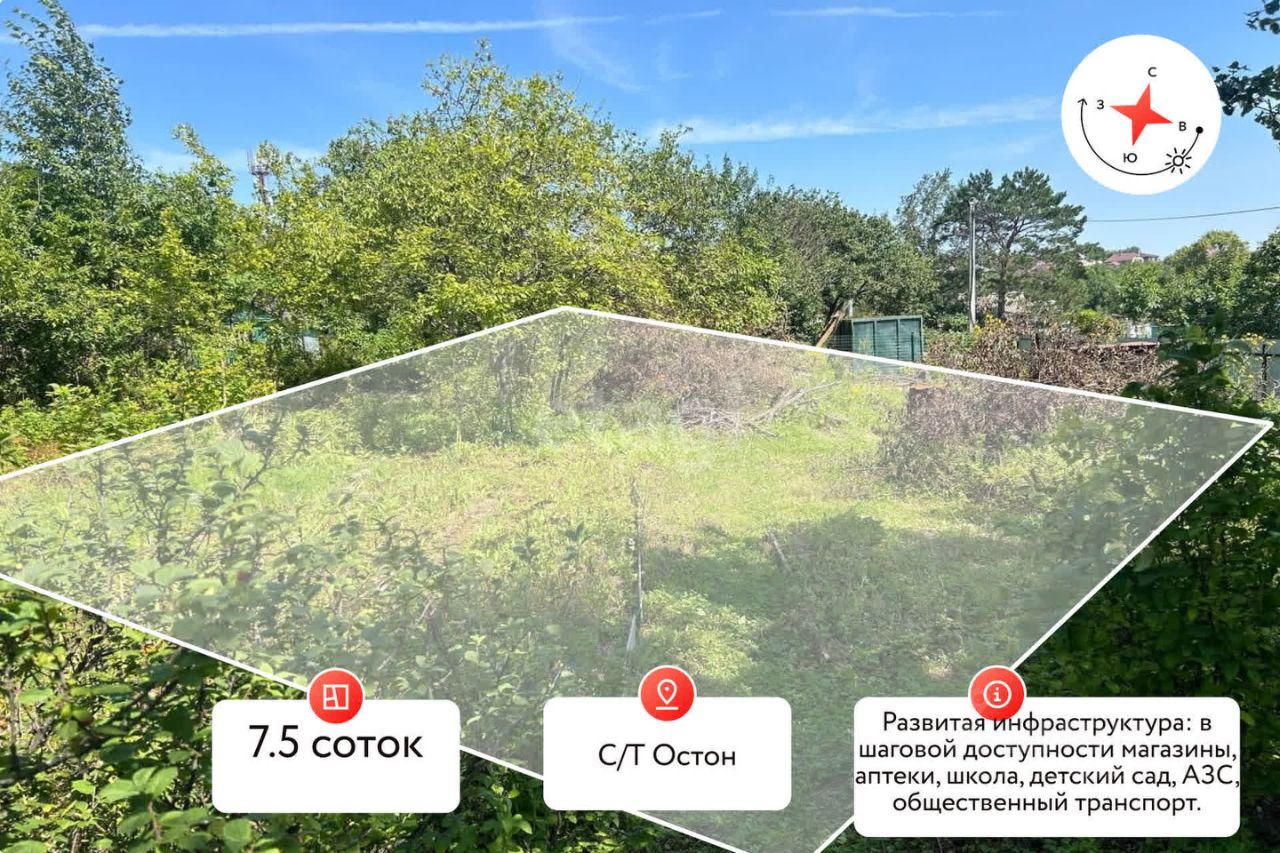 Продается отличный земельный участок, с/т "Остон", 200 метров от остановки Полярная (конечная автобуса 8, 35, 47).