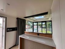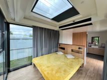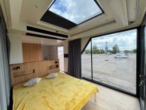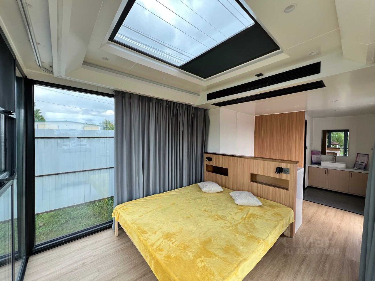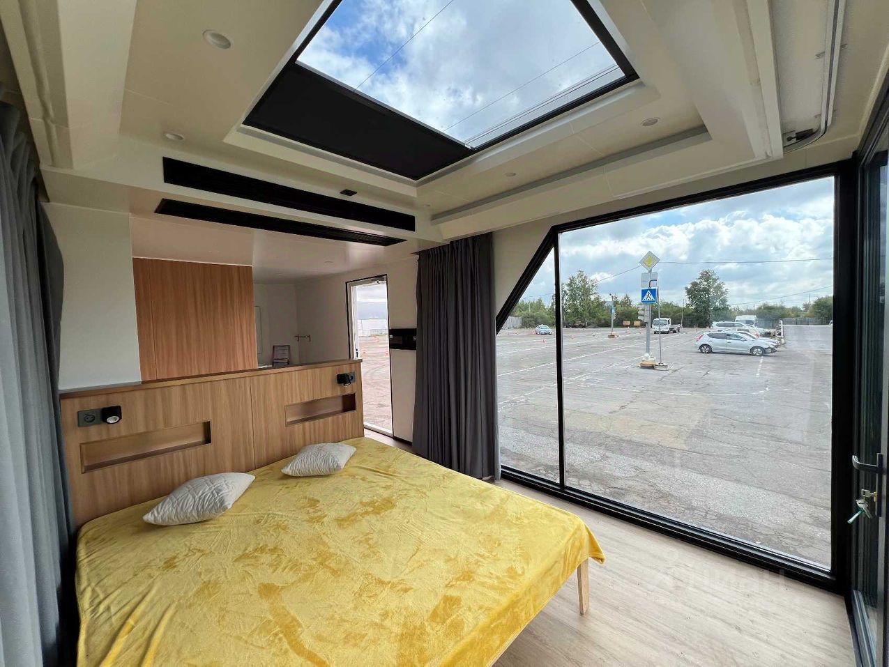 Панорамные окна + иллюминатор в потолке.