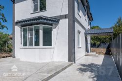 + Фасад дома отделан декоративная штукатурка и фасадная краска в современном стиле;