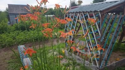 - Удобный заезд для двух машин, забор из сетки-рабицы с воротами.