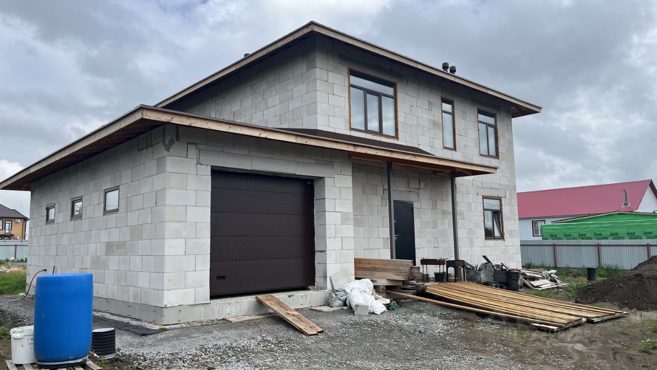 Дом был построен в 2024 году по ДВ ипотеке компанией СтройИнновации, по проекту 097 с небольшими дополнениями к проекту. Основание дома- плита, стены газоблок д400, перекрытие- монолит, лестница бетонная, залита вместе с перекрытием.
