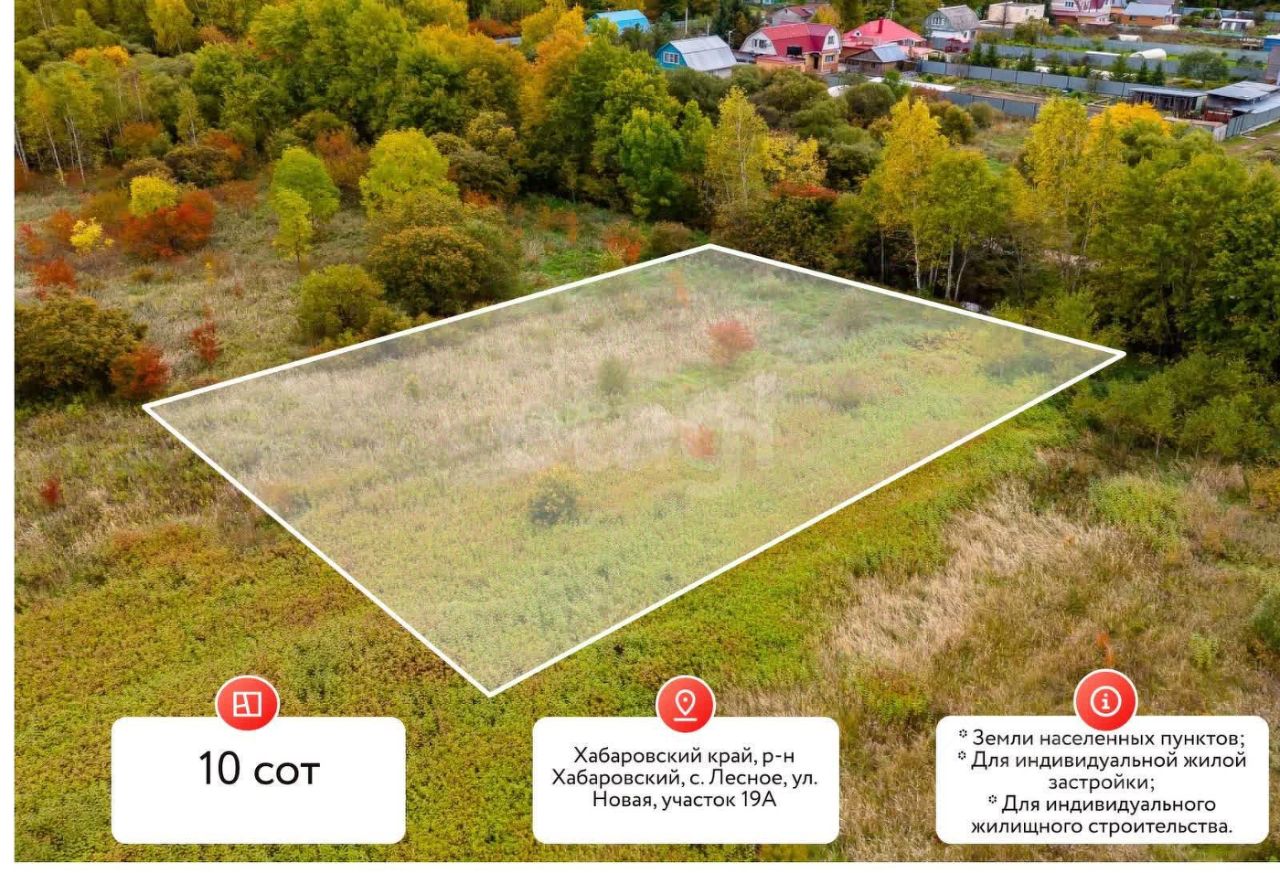 Продается земельный участок 10 соток в перспективном селе Лесное! Всего 30 минут на автомобиле до Хабаровска — идеальный баланс загородной жизни и городской доступности.