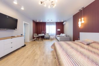 Просторная гостиная с панорамными окнами и потрясающим видом на реку Амур