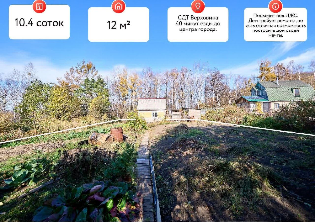 Продается земельный участок площадью 10 соток в СДТ "Верховина", расположенный в живописном районе Сопки двух братьев.