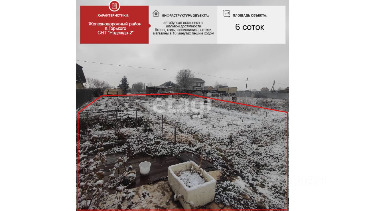 Продается уникальный земельный участок в живописном поселке Горького! Этот участок площадью 6 соток — идеальное место для вашего будущего дома или дачи. Он уже межеван и имеет все необходимые документы, что гарантирует легкость сделки. Участок расположен в зоне, где разрешено ведение садоводства и огородничества, что открывает перед вами множество возможностей для реализации ваших идей. На территории уже имеются плодовые насаждения: яблоня, слива, ирга, жимолость, ежевика и малина — вы сможете наслаждаться свежими фруктами прямо у себя на участке! Также присутствует небольшой домик (7,5 м²), который идеально подойдет для хранения инвентаря и садового оборудования. Что касается коммуникаций, то участок обеспечен летним водопроводом для полива, а электричество доступно благодаря столбу, расположенному рядом. Газоснабжение планируется в 2025-2026 годах, что делает этот участок еще более привлекательным для строительства вашего дома. Расположение участка также не может не радовать! До центра города всего 15-20 минут на машине. В шаговой доступности — остановка общественного транспорта, а в 10 минутах пешком находится весь необходимый набор инфраструктуры: школы, детские сады, магазины, поликлиника и аптеки. Это идеальное место для жизни с семьей! Собственник один, документы готовы, полное сопровождение сделки и помощь в одобрении ипотеки — мы позаботимся о том, чтобы процесс покупки прошел максимально комфортно для вас. Не упустите возможность стать владельцем этого замечательного участка! Звоните прямо сейчас, записывайтесь на просмотр и начните строить свой идеальный дом мечты!