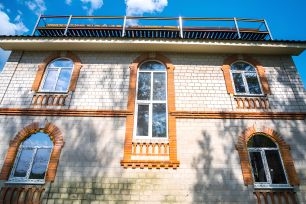-Коттедж 3 этажа жилых, крыша -мансарда и большое подвальное помещение(где установлен котел ,оборудование для газифицированния , емкости для воды)