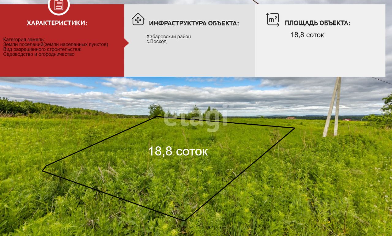 Продается земельный участок.19 соток.Категория земель:земли поселений(земли населенных пунктов).Вид разрешенного строительства:садоводство и огородничества.Проведено межевание.Недалеко от участка ,столбы с электричеством.Земля в собственности.Оказываем помощь с межеванием участков,помощь в постановке на кадастровый учет.Бесплатное одобрение ипотеки.Поможем со строительством дома.СТРОИМ ДОМА РАЗНОЙ КОМПЛЕКТАЦИИ,С НАШИМИ ПАРТНЕРАМИ !!!ЗВОНИТЕ!!!