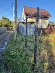 Вкопаны сваи под забор, весь необходимый металл для его установки в наличии.