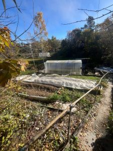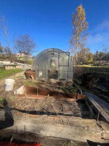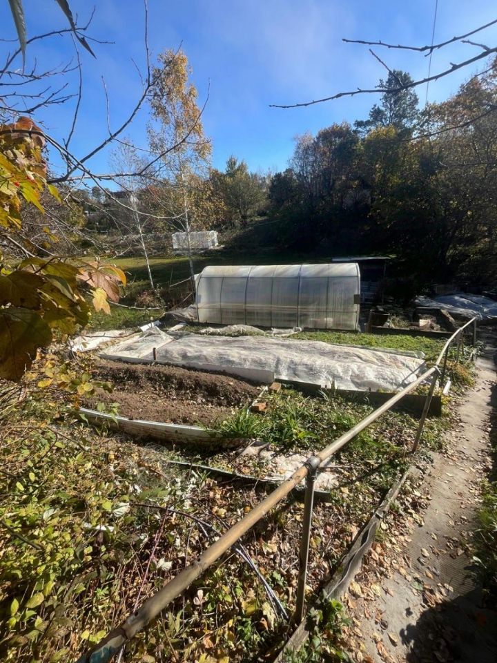 Установлена теплица, и хозпостройки для хранения всего необходимого.