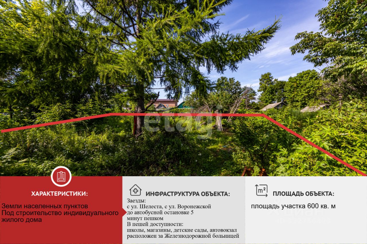 Участок правильной прямоугольной формы площадью 6 соток с доступом с ул.Воронежской и ул. Шелеста.
