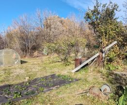 Участок: Полностью огорожен металлическим забором, земля плодородная, большая часть участка разработана под грядки и сад.