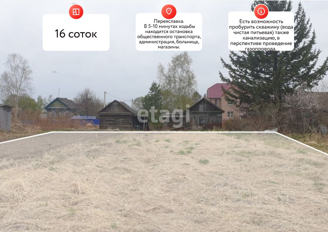 Продается хороший участок в п.Переяславка. Участок 16 соток, межеванный, ровный, без насаждений в глубине жилого сектора, хорошие соседи. Есть возможность пробурить скважину (вода чистая питьевая) также канализацию, в перспективе проведение газопровода. Участок в собственности, подходит под сельскую и семейную ипотеку, под ИЖС. В 5-10 минутах ходьбы находится остановка общественного транспорта, с которой вы сможете с легкостью доехать до города, детская поликлиника, администрация, больница, магазины. Помогу с одобрением и оформлением документов. Координаты участка 47..051124