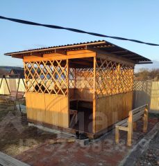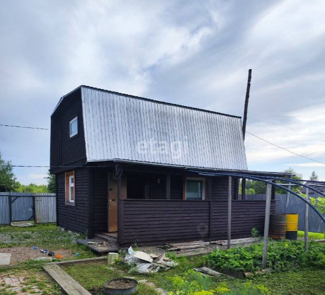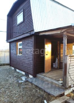 Дом 39 кв.м. ленточный фундамент. 1 этаж из бруса 150*150мм, второй этаж - мансардная крыша, полы и стены утеплены, снаружи обшит доской, необходима внутренняя отделка, есть металлический погреб.