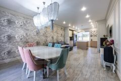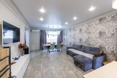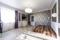 При продаже покупателю передается полностью укомплектованный дом: кухонный гарнитур со встроенной техникой, обеденная группа, морозильный ларь, а также люстры и гардеробная система.