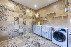 На первом этаже расположены просторная кухня-гостиная, рабочий кабинет, прачечная, санузел и терраса — всё для комфортного проживания и работы. Второй этаж включает три спальни, санузел и ещё одну террасу, создавая уютные условия для всей семьи. В подвале находятся зона для спортзала и техническая зона: бойлерная с резервуарами для воды и возможностью обустройства гаража.