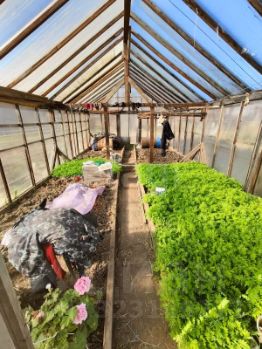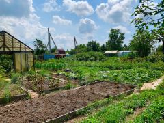 Разбиты грядки, плодородная земля, множество ягодных кустарников.