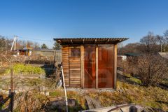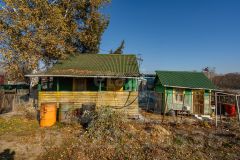 Жилые постройки: уютный двухкомнатный дом с просторной крытой верандой и отдельной кухней — отличное место для отдыха и проживания. Дополнительные сооружения: летний душ, туалет, два парника и хозяйственная пристройка для инвентаря — всё для комфортного ведения хозяйства