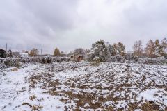 Участок выровнен, правильной формы, огорожен забором из проф. листа.