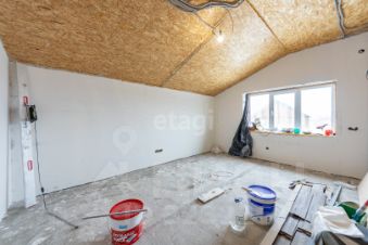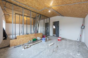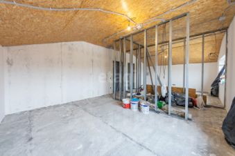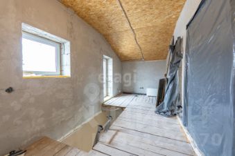 Второй этаж в черновой отделке, выполнена стяжка пола, разведена проводка, по проекту две спальни и санузел.