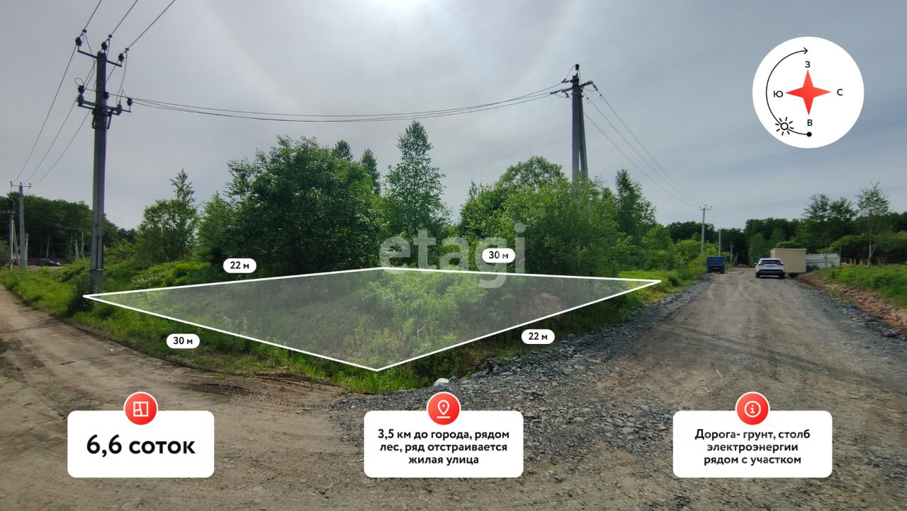 До города 3,5 км дороги. Рядом строятся коттеджные посёлки, соседняя улица также активно застраивается (смотрите последние фото). Данный участок площадью около 6,5 соток, рядом есть столбы с электричеством. Участок размежеван, весь рельеф оставлен нетронутым, что позволяет выбрать и оставить нужные участки с деревьями или же полностью его разработать.