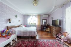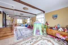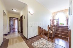 На второй этаж ведет массивная, крепкая, красивая лестница из цельного дуба. На втором этаже большая детская комната с игровой зоной 52,1 кв.м., 5 спален разной площади, 2 сан узла, веранда с витражным остеклением, оборудованная под спортзал.