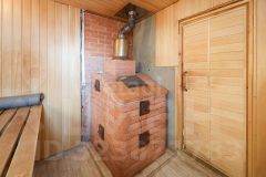 Настоящая русская баня на дровах с чугунной печкой с закрытой каменкой в обкладке кирпичом, вентиляция, подача свежего воздуха в парную под печью и под топку, парилка отделана липовой вагонкой. На зимний период внутри стоит емкость с водой на 400 литров.